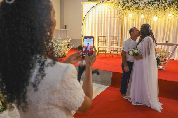A cerimônia teve decoração temática, ambiente preparado especialmente pela equipe do Judiciário, painel fotográfico e troca de alianças, criando um clima festivo e inclusivo. Além de celebrar o amor, o casamento comunitário contribui para a regularização documental dos participantes e reafirma o papel social do Poder Judiciário no interior do estado.