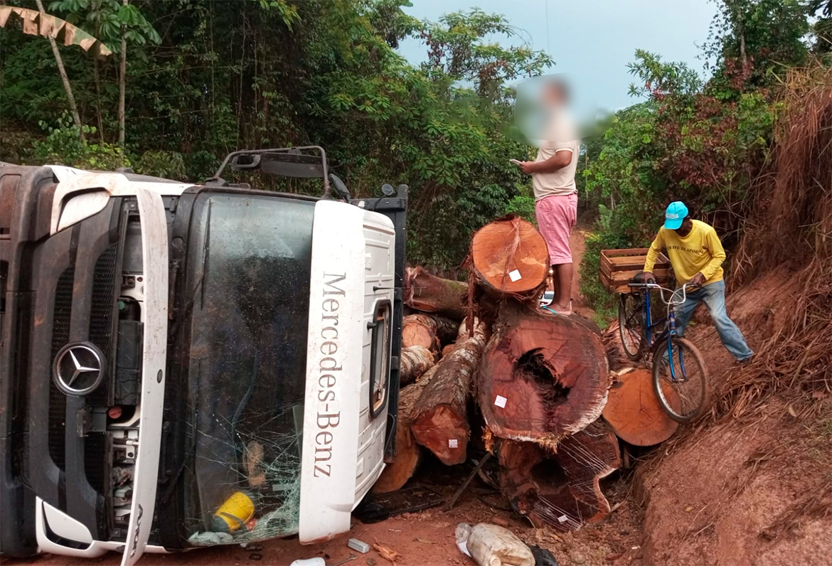 PORTAL RIO MADEIRA – Um acidente grave foi registrado no início da noite desta quarta-feira (24) na estrada da Bacia Leiteira, linha 42, em Porto Velho. Um caminhão carregado com toras de madeira tombou após manobra brusca do condutor para evitar colisão frontal com um ônibus escolar lotado de estudantes.