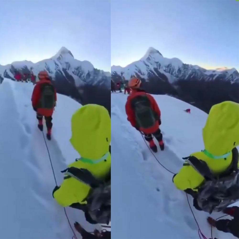 Nas imagens, é possível ver o momento em que o alpinista se desequilibra após soltar o cinto de segurança e despenca diante dos olhares desesperados de outros escaladores, que nada puderam fazer para impedir a queda.