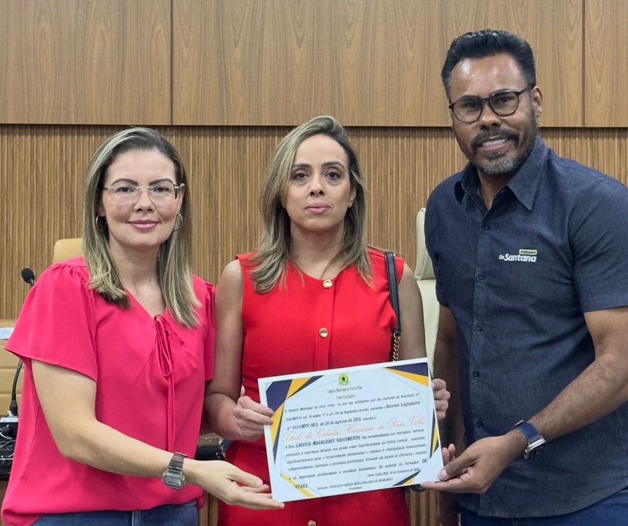 PORTAL RIO MADEIRA – Em uma sessão solene repleta de emoção e reconhecimento, a Câmara Municipal de Porto Velho concedeu o Título de Cidadã Honorária à policial federal Larissa Magalhães Nascimento, ex-superintendente regional da Polícia Federal em Rondônia. A homenagem, realizada na manhã desta quinta-feira (3), foi proposta pelo vereador Dr. Santana (PRD) e teve relatoria do vereador Everaldo Fogaça (PRD).