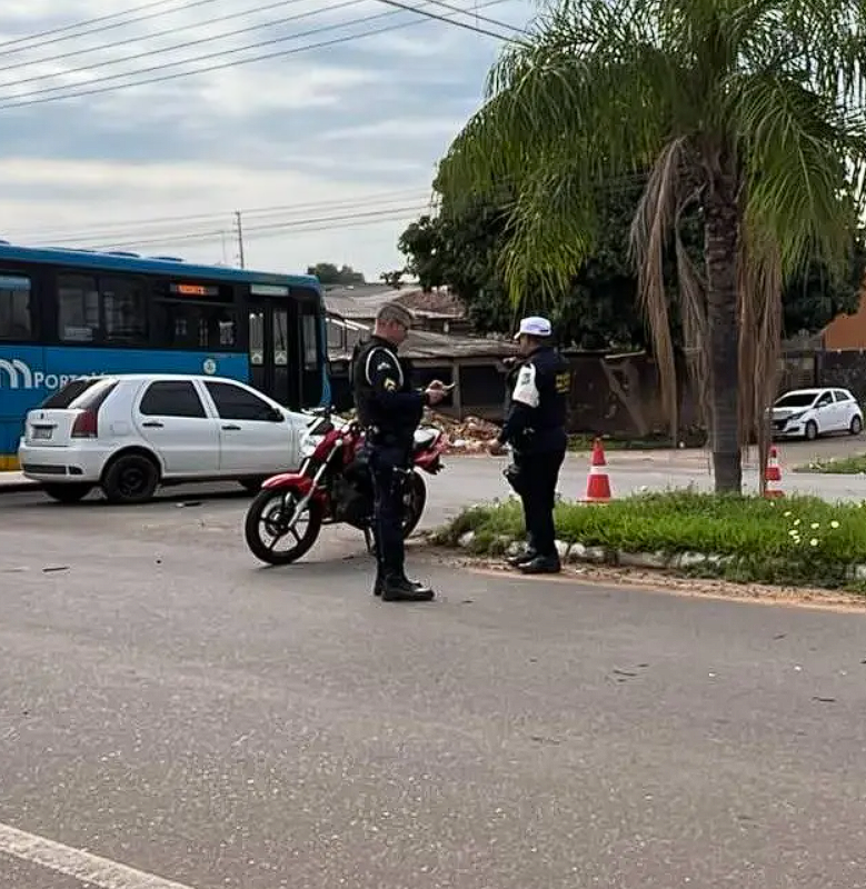 PORTAL RIO MADEIRA – Um motociclista ficou ferido na manhã desta sexta-feira (10) após um grave acidente no cruzamento das avenidas Rio de Janeiro e Marechal Deodoro, região central de Porto Velho.