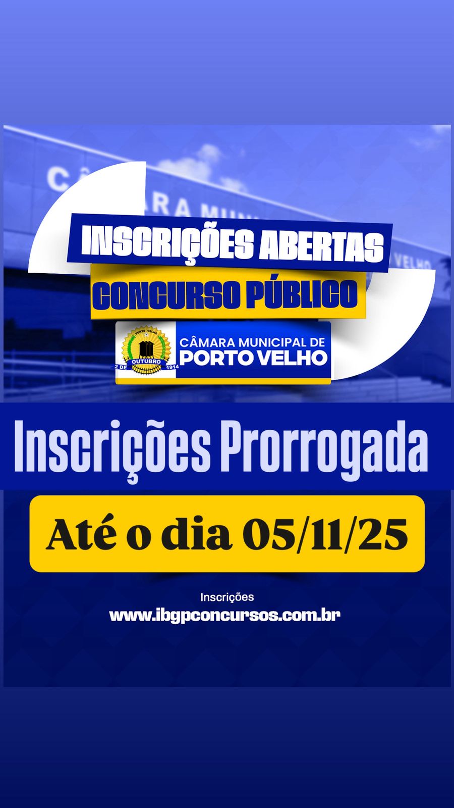 Tags: Câmara Municipal de Porto Velhoconcurso públicoeditalIBGPinscriçõesprorrogação de prazorondoniaserviço público