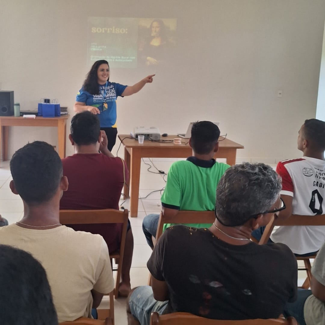 Durante a palestra, Yonara Caetano explicou que a saúde do corpo depende diretamente da saúde da boca, enfatizando que uma boa higiene bucal é essencial para evitar doenças e garantir o bom funcionamento do organismo. Ela incentivou os internos a adotarem hábitos saudáveis e manterem o compromisso com a própria saúde.