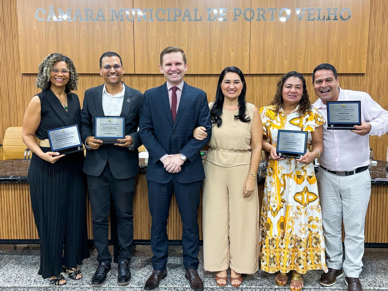 A Câmara Municipal de Porto Velho realizou uma Sessão Solene especial para homenagear os casais Pastor José Percy e Pastora Marli Tavares, e Pastor Ciro Ribeiro e Pastora Irismar David, entregando o Título de Cidadão Honorário em reconhecimento às importantes contribuições sociais, espirituais e comunitárias prestadas à capital.